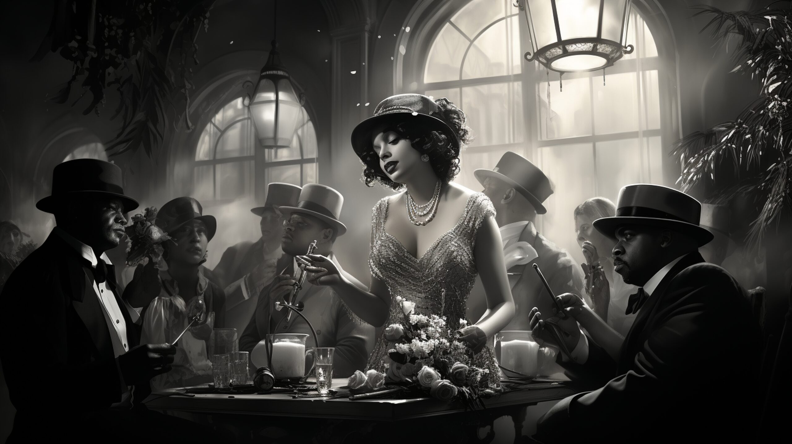 elegáns ruhák, kalapok, flitterek, gyöngysorok vagy klasszikus maffiastílus – nem kötelező, de még izgalmasabbá teszi az élményt!
